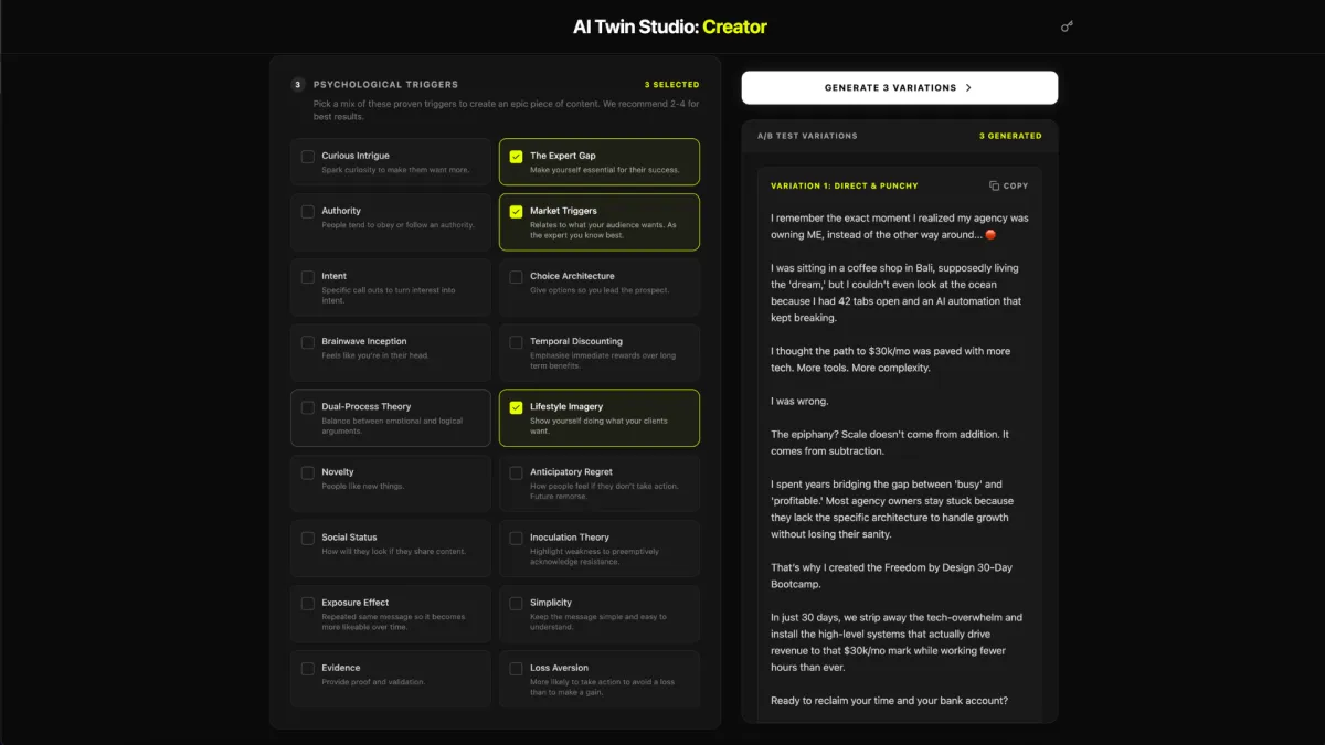 Access our suite of Studio Apps to build your next AI Twin
